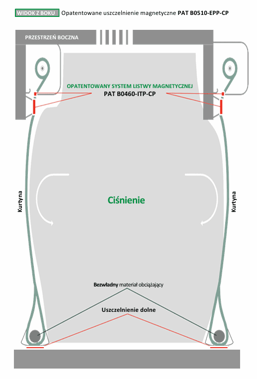 🔸System prowadnic: Opatentowany system ślizgowy z samosmarującym polizenem o wysokiej gęstości, wyposażony w suwak bezpośrednio na kurtynie