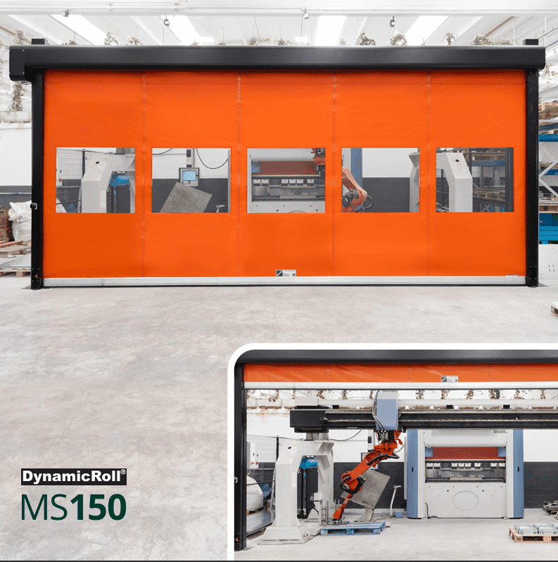 MS 150 to szybkobieżna brama rolowana do ochrony mechanicznej maszyn i linii produkcyjnych. Wyposażona w mikroprzełącznik bezpieczeństwa montowany w dolnej części kolumny, który dostarcza do centrali sygnał o położeniu bramy. Brama jest zgodna z dyrektywą maszynową 2006/42/WE i dyrektywą 2014/30/UE (EMC).