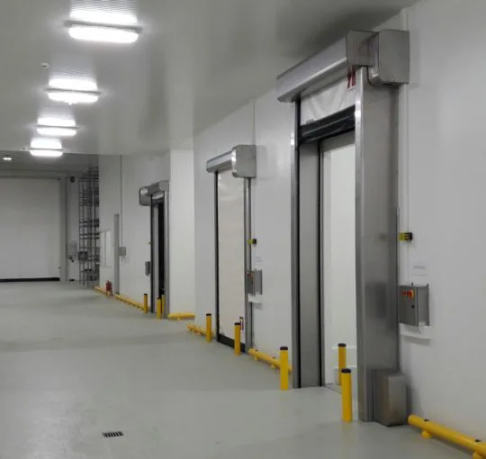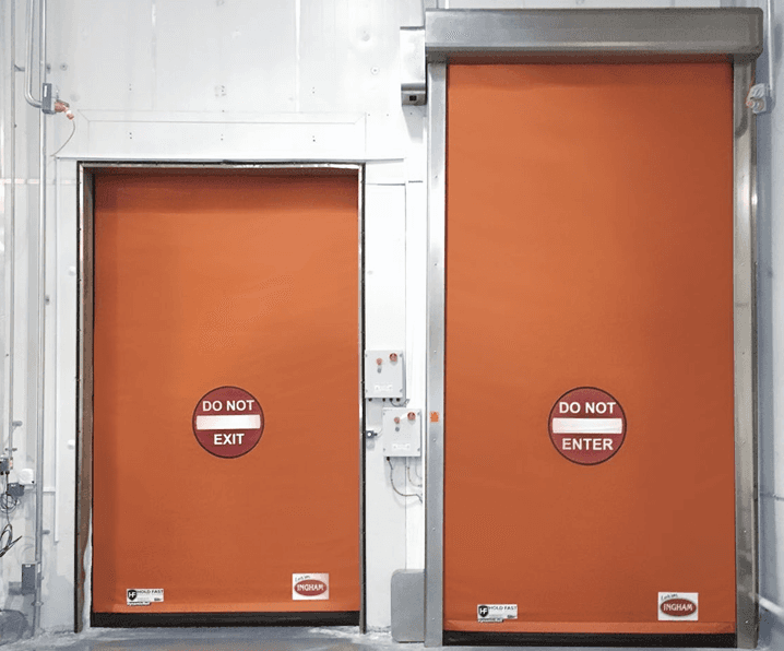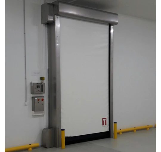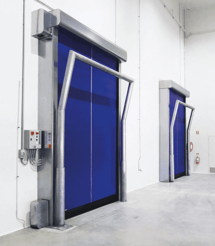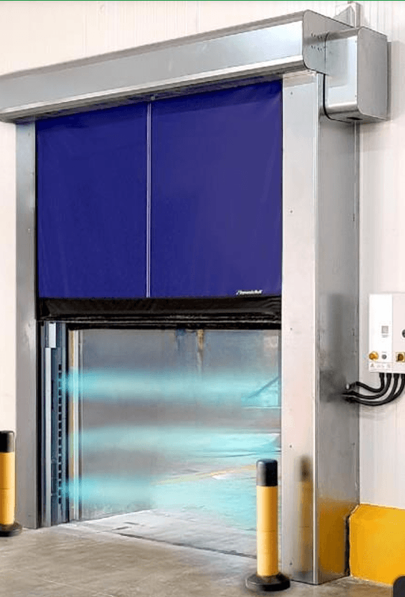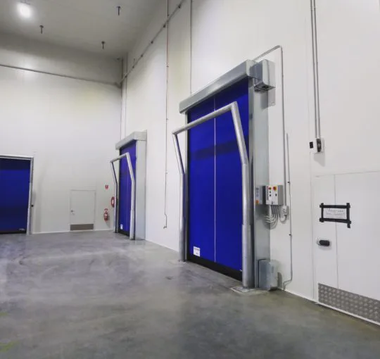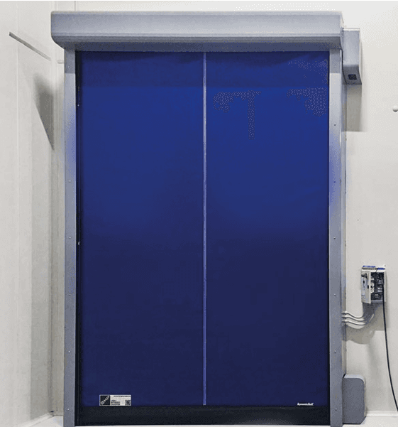 FRIGO 2 AIR to szybkobieżna brama rolowana z systemem samonaprawy dedykowana do mroźni. Płaszcz bramy zbudowany z 2 izolowanych kutyn zapewnia skuteczne działanie nawet przy temperaturze -35°C. System Air Flow eliminuje ryzyko sklaplania wody i obladzania elementów bramy.