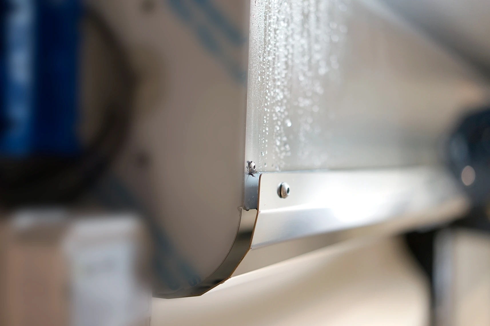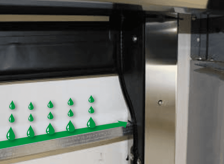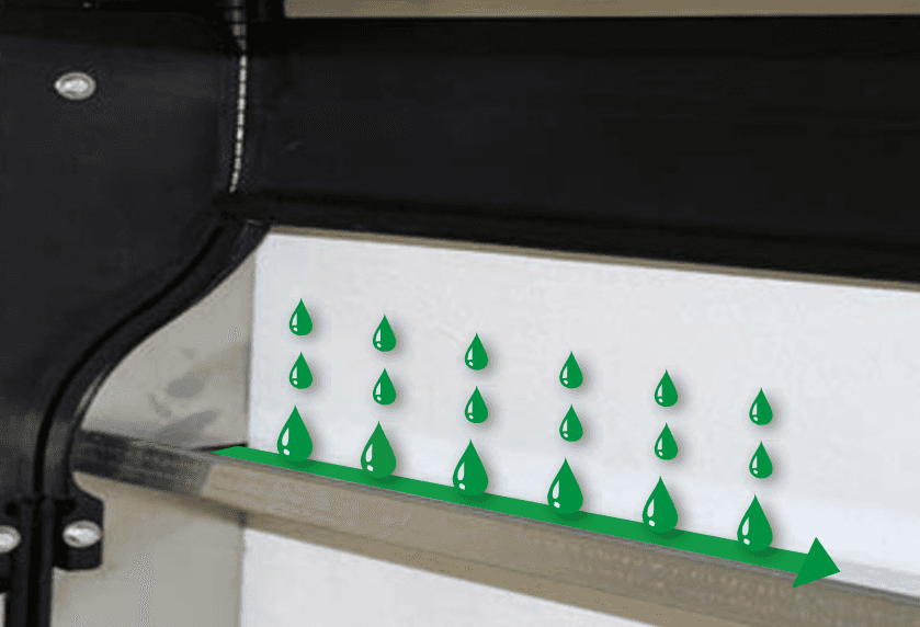 ✅ Zapobieganie skapywaniu wody na przejście: innowacyjna konstrukcja wału zapobiega skapywaniu wody i nieczystości na przejście, gdy brama pozostaje w pozycji otwartej.