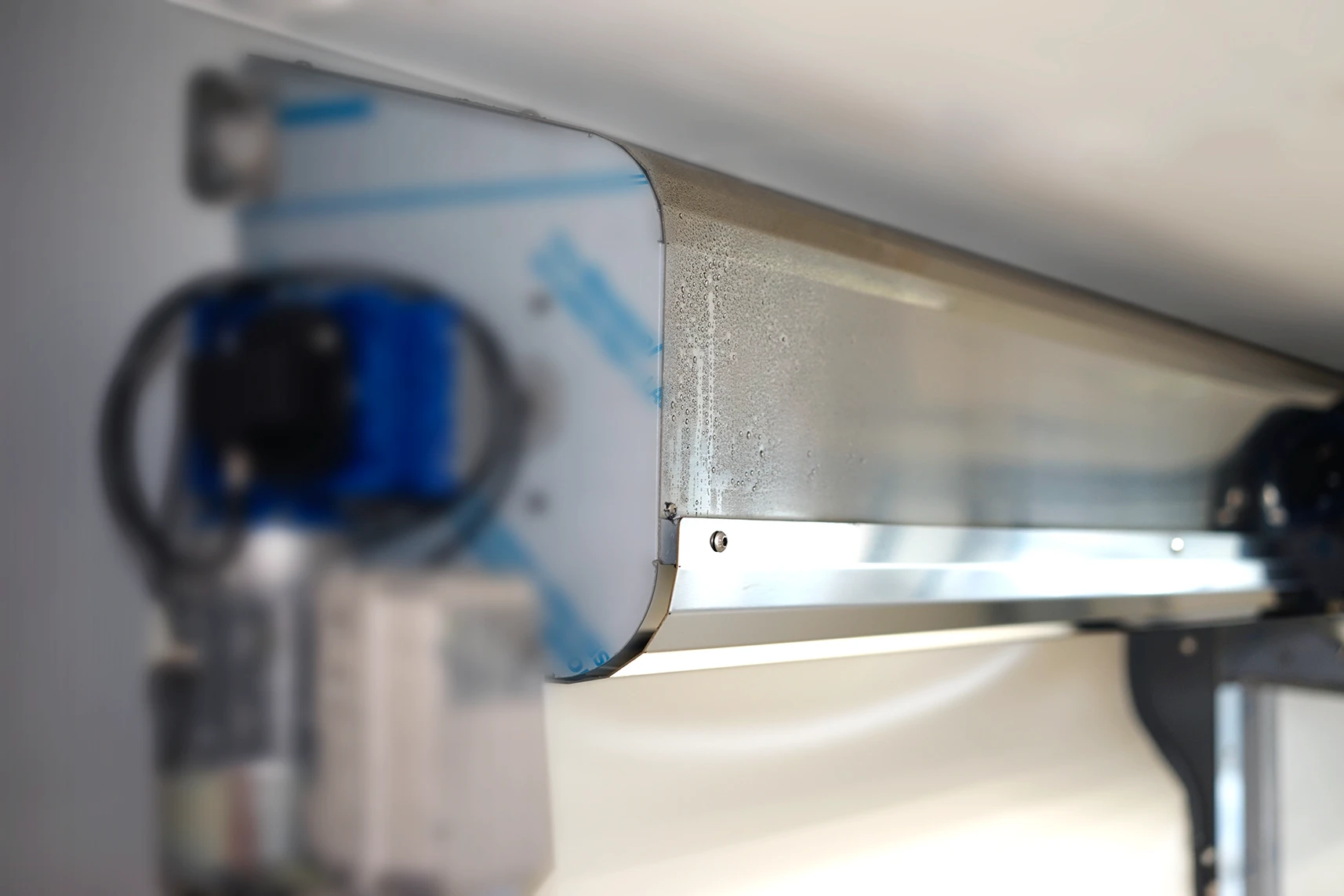 🔸System prowadnic: Opatentowany system ślizgowy z samosmarującym polizenem o wysokiej gęstości, wyposażony w suwak bezpośrednio na kurtynie